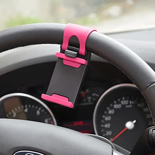 Cell Phone Holder for Car, Steering Wheel Hanging Buckle Type Retractable Phone Holder, Universal for iPhone 13/12 Pro, Pro Max, XS, Samsung, More Devices, Suitable for All Vehicles (Pink)